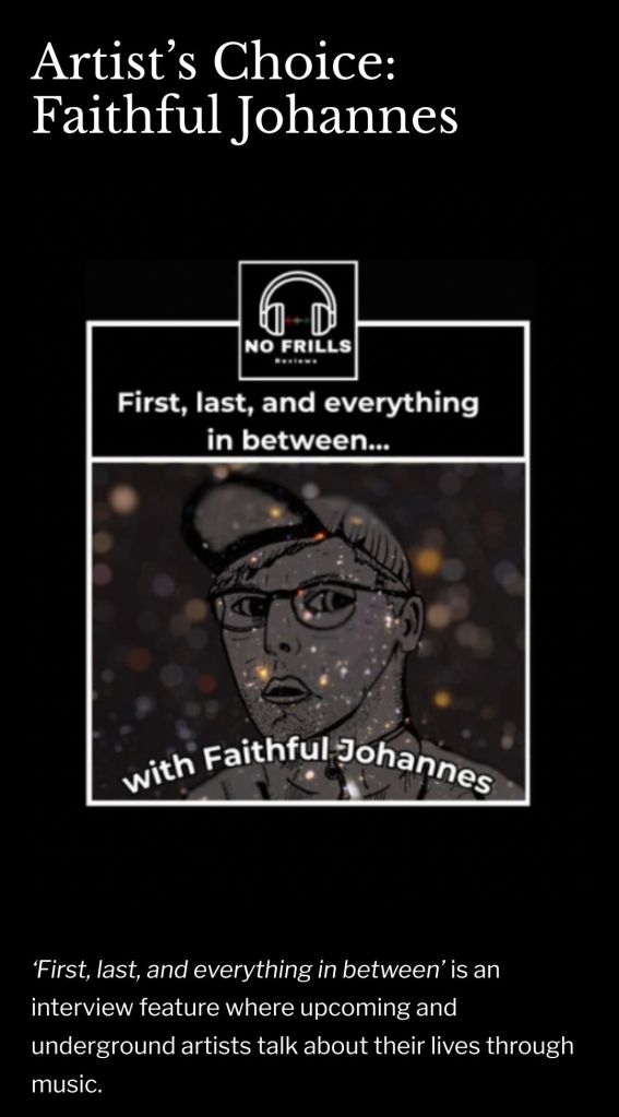 I did a long form interview with No Frills a few weeks back. Talked about Do The Bartman and other stuff. Have a read here- https://nofrillsreviews.com/2024/03/24/artists-choice-faithful-johannes/