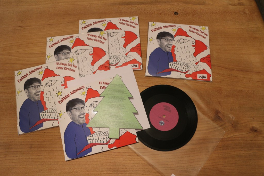 The last five Xmas 7″s are now available on Faithful Johannes’ Bandcamp … it’s this year’s ‘I’ll Always Call You Father Christmas’ backed with last year’s ‘It’s OK to be Alone (This Christmas) [feat. Benjamin Amos]. Edition of 40.