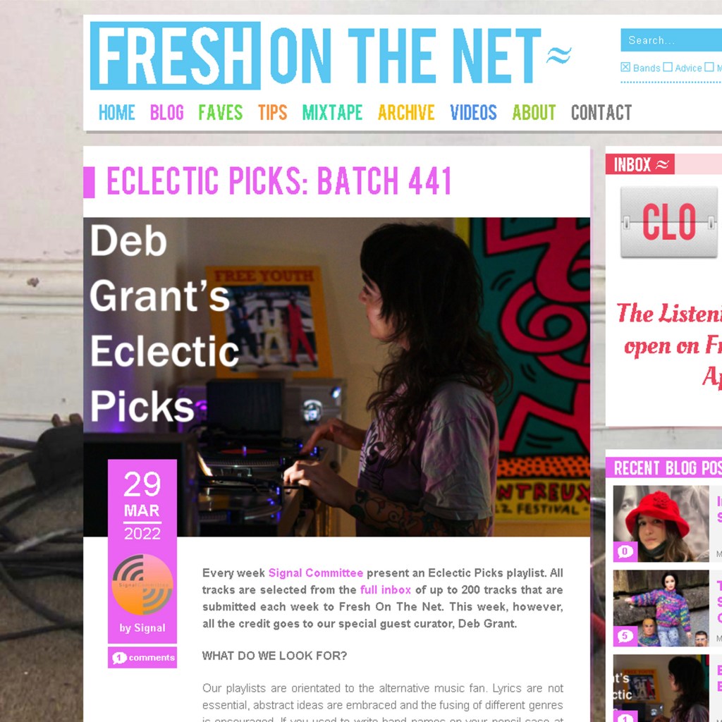 Hey, so, just posting to share the news that Deb Grant (Jazz FM and occasional 6Music DJ) picked Chazza Shop Song as one of her Eclectic Picks from last week’s Fresh on the Net submissions! You can read a listen to the playlist at https://freshonthenet.co.uk/2022/03/eclectic-441/ – and check the lovely quote below: